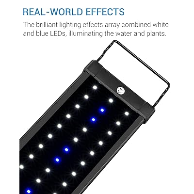 5 0 out of 5 stars 1. The higher the number of lumens per gallon, the brighter the fish tank will be. White and blue leds, suitable for your aquarium. In contrast, the nicrew light uses metal brackets/legs, which sit on the edge of the aquarium glass. 34.2 in l x 4 in w, light with brackets extend: